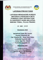 Laporan PPM K017/2025 : Laporan Menghadiri Kursus “ Materials Research With Powdwe X-ray Diffraction” Di USM Nibong Tebal, Pulau Pinang pada 22 Mei 2025 / oleh Muhammad Hazim b. Yaacob, Nur Syaqirah bt. Abdul Kadir Kunju, Azmad Azib b. Ahmad