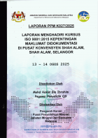 Laporan PPM K027/2025 : Laporan Menghadiri Kursus ISO 9001:2015 Kepentingan Maklumat Didokumentasi Di Pusat Konvensyen Shah Alam, Shah Alam Selangor Pada 13 - 14 Ogos 2025 / oleh Mohd Hakim b. Ibrahim