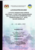 Laporan PPM K031/2025 : Laporan Menghadiri Kursus Protokol, Etiket Dan Pengacaraan Majlis Di Institut Kepimpinan Dan Pembangunan (ILP), Nilai, Negeri Sembilan pada 28 - 30 April 2025 / oleh Dr. Tinesha a/p Selvaraj, Ahmad Firdaus b. Shamsul Baharin