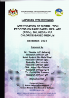 Laporan PPM R025/2025 : Investigation Of Dissolution Process On Rare Earth Oxalate (REOx), SIK, Kedah Via Chloride-Based Medium , Disember 2025 / by Dr. Tinesha a/p Selvaraj, Mohd Syahrir b. Mohd Rozi, Roshaida bt Arbain, ChM. Anuar b. Othman, Ts. Costantine Joannes