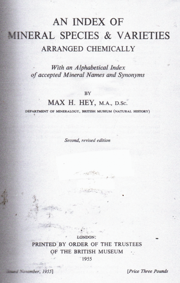 An Index Of Mineral Species And Varieties Arranged Chemically, With An Alphabetical Index Of Accepted Mineral Names And Synonyms /