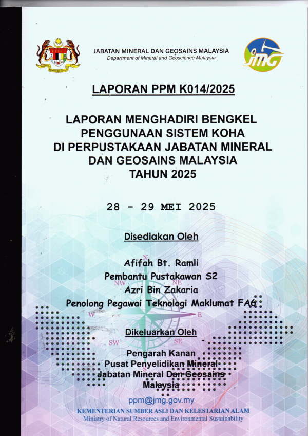 Laporan PPM K014/2025 : Laporan Menghadiri Bengkel Penggunaan Sistem Koha Di Perpustakaan Jabatan Mineral Dan Geosains Malaysia Tahun 2025 , pada 28 - 29 Mei 2025 /