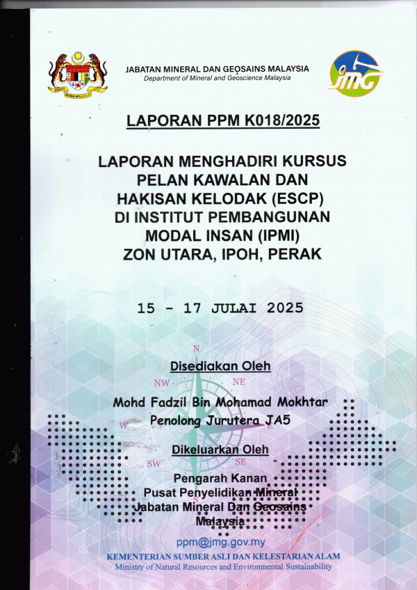 Laporan PPM K018/2025 : Laporan Menghadiri Kursus Pelan Kawalan Dan Hakisan Kelodak (ESCP) Di Institut Pembangunan Modal Insan (IPMI) Zon Utara, Ipoh, Perak, pada 15 - 17 Julai 2025 /