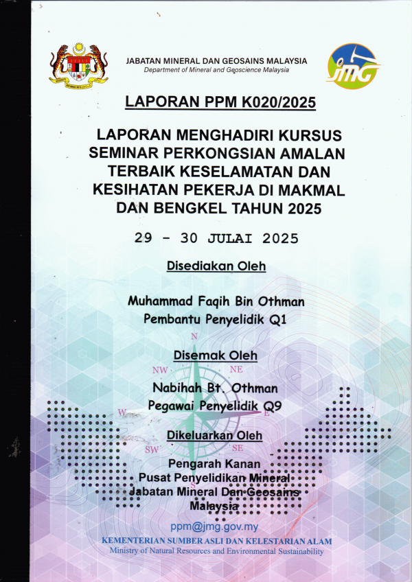 Laporan PPM K020/2025 : Laporan Menghadiri Kursus Seminar Perkongsian Amalan Terbaik Keselamatan Dan Kesihatan Pekerja Di Makmal Dan Bengkel Tahun 2025 pada 29 - 30 Julai 2025 /