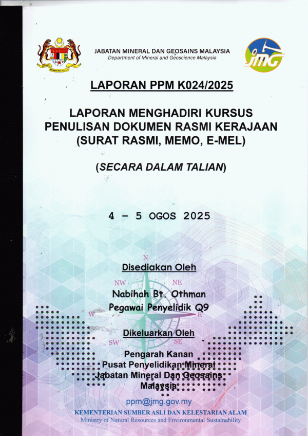 Laporan PPM K024/2025 : Laporan Menghadiri Kursus Penulisan Dokumen Rasmi Kerajaan (Surat Rasmi, Memo, E-mel) Secara Dalam Talian pada 04 - 05 Ogos 2025 /