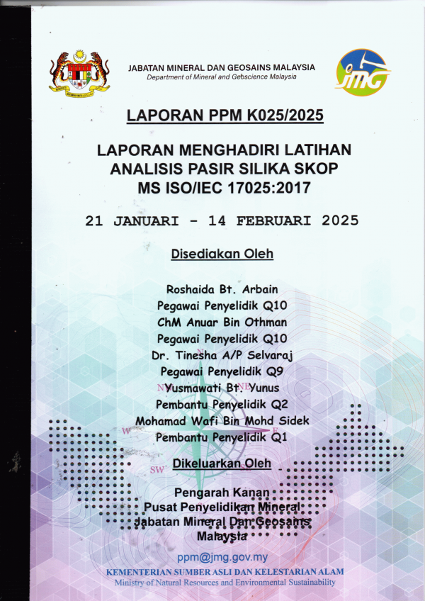 Laporan PPM K025/2025 : Laporan Menghadiri Latihan Analisis Pasir Silika Skop MS ISO/IEC 17025:2017, pada 21 Januari - 14 Februari 2025 /