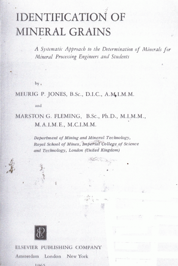 Identification Of Mineral Grains : A Systematic Approach To The Determination Of Minerals For Mineral Processing Engineers And Students /