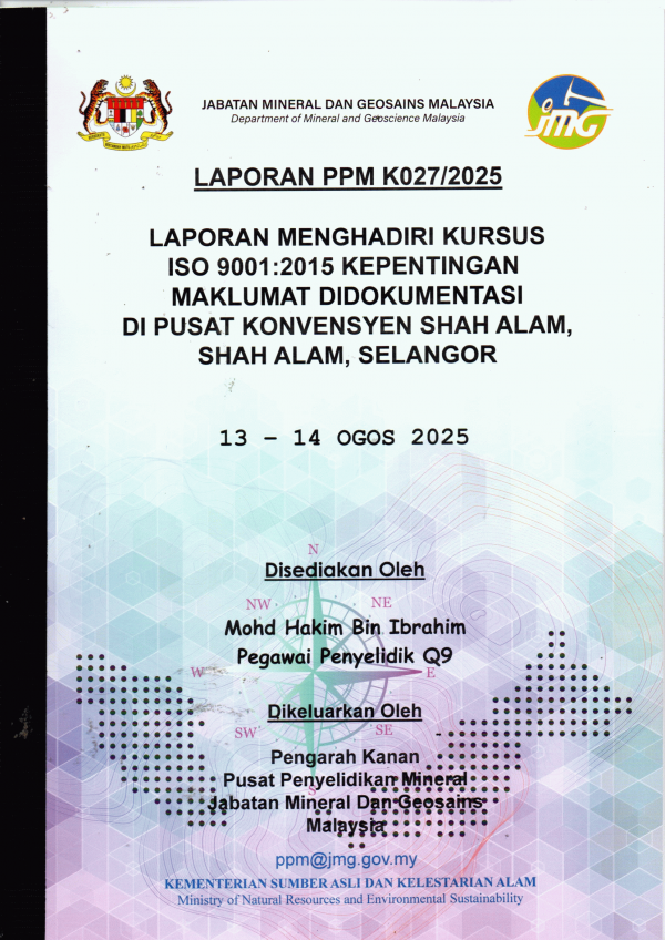 Laporan PPM K027/2025 : Laporan Menghadiri Kursus ISO 9001:2015 Kepentingan Maklumat Didokumentasi Di Pusat Konvensyen Shah Alam, Shah Alam Selangor Pada 13 - 14 Ogos 2025 /