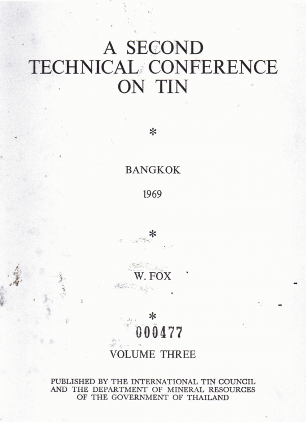 A Second Technical Conference On Tin, Bangkok, 1969 : volume 3 /