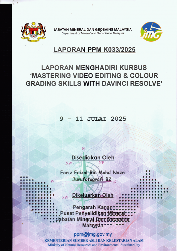 Laporan PPM K033/2025 : Laporan Menghadiri Kursus 'Mastering Video Editing & Colour Grading Skills With Davinci Resolve', 09 - 11 Julai 2025 /