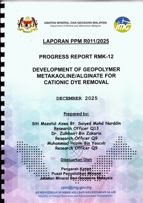 Laporan PPM R011/2025 : Development Of Geopolymer Metakaoline / Alginate For Cationic Dye Removal (Progress Report RMK-12) , Disember 2025 /