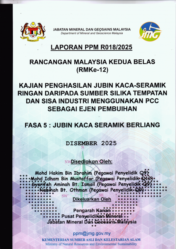 Laporan PPM R018/2025 : Kajian Penghasilan Jubin Kaca-Seramik Ringan Daripada Sumber Silika Tempatan Dan Sisa Industri Menggunakan PCC Sebagai Ejen Pembuihan , Disember 2025 /