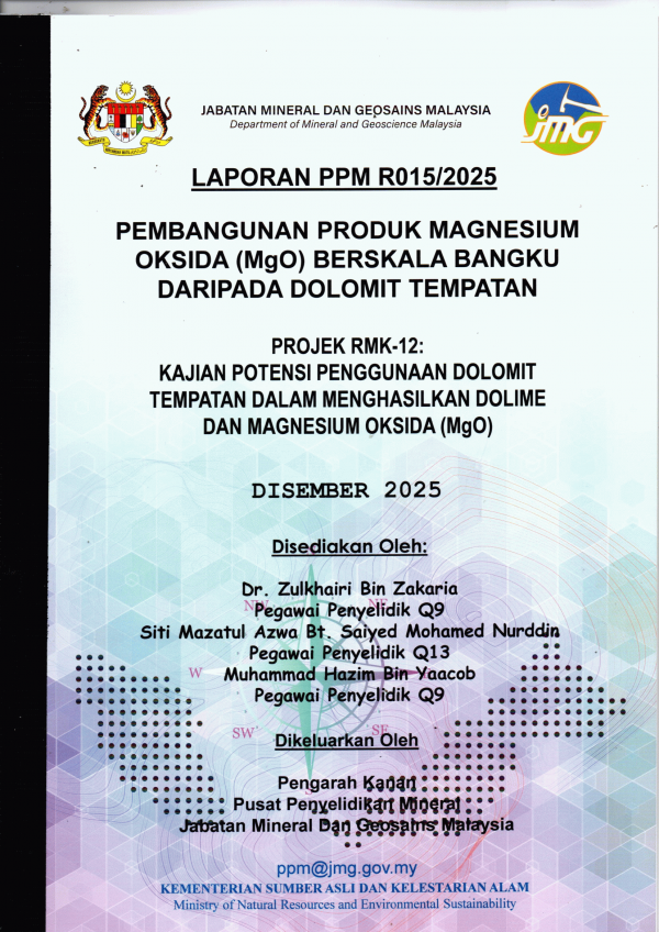 Laporan PPM R015/2025 : Pembangunan Produk Magnesium Oksida (MgO) Berskala Bangku Daripada Dolomit Tempatan , Disember 2025 /